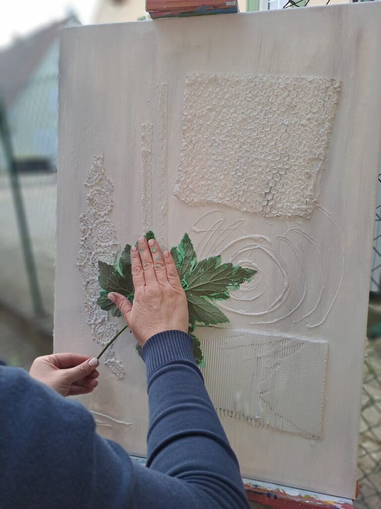 Acryl trifft auf Mixed Media: Worte, Fundstücke, Spachtelmasse, Drucke…, was auch immer Du so auf die Leinwand packen magst. Du kannst aus der Vielfalt meiner Werkstatt schöpfen und Dich inspirieren lassen.