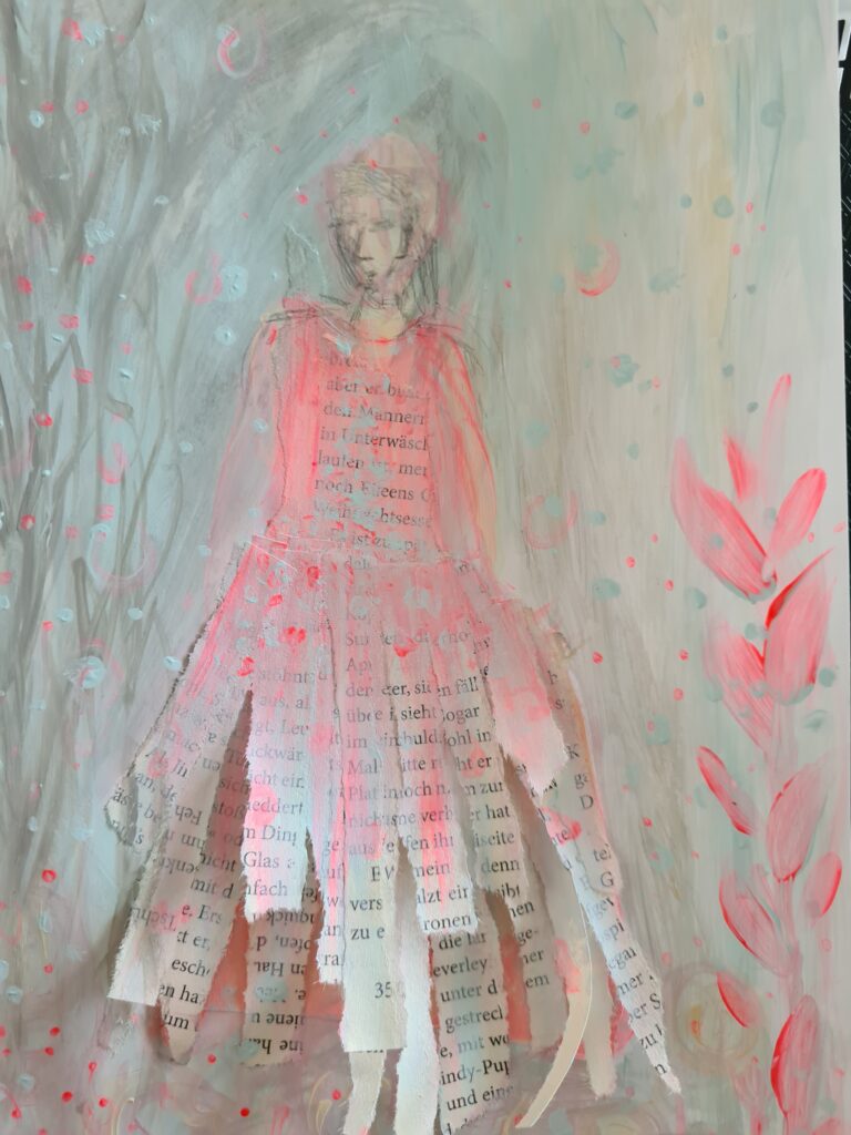 Du kannst auf Leinwand oder Papier malen, mixed media oder Drucken mit Gelplatten ausprobieren.